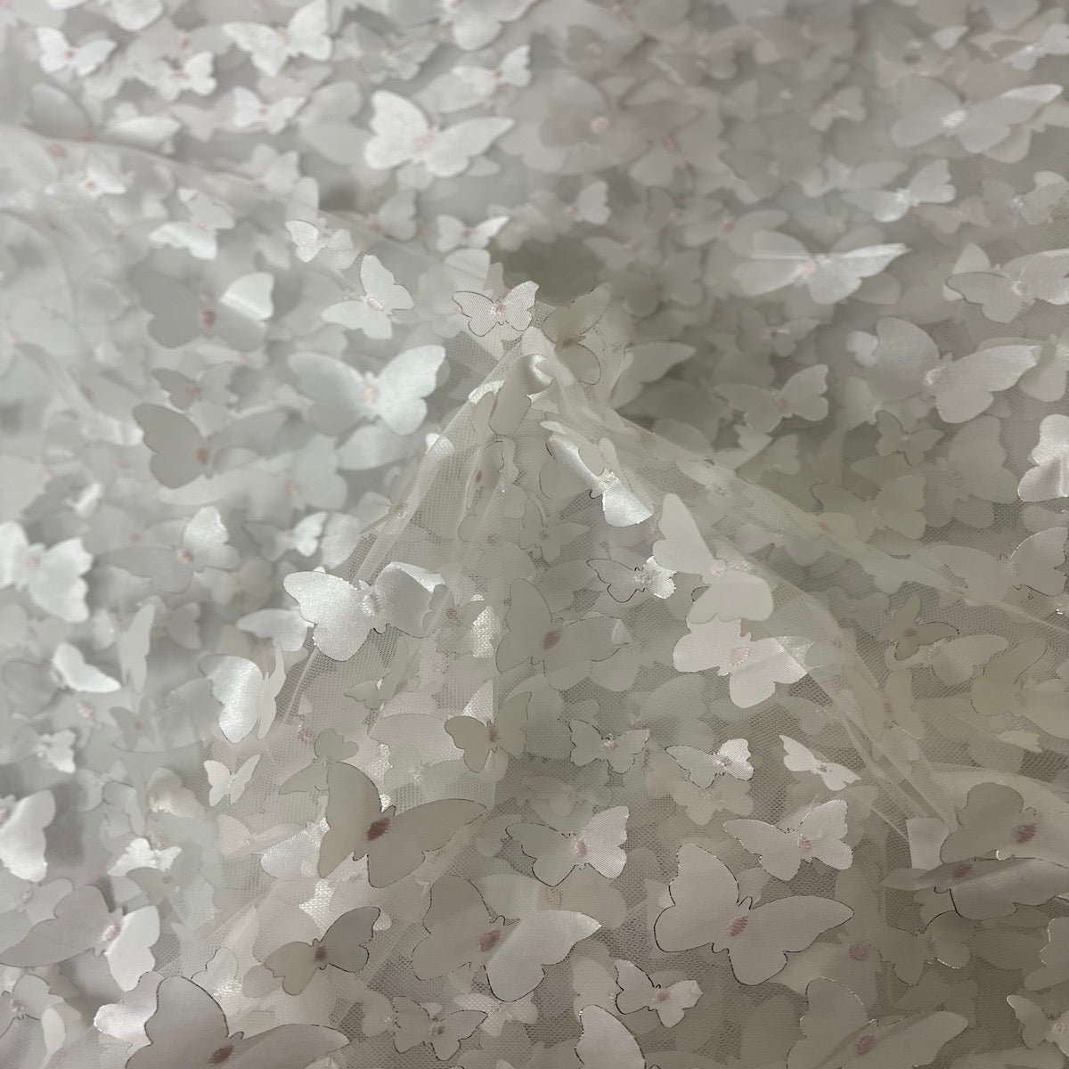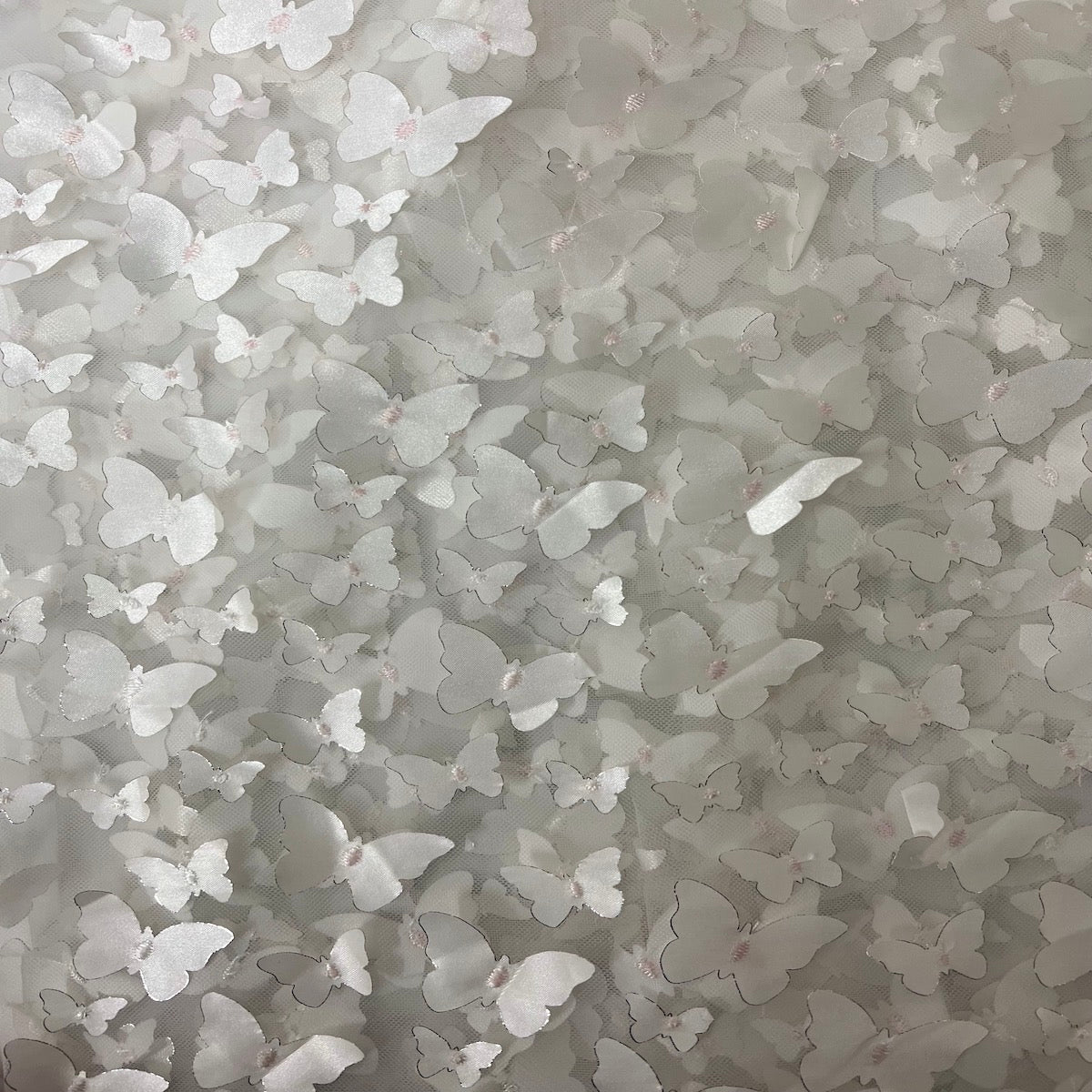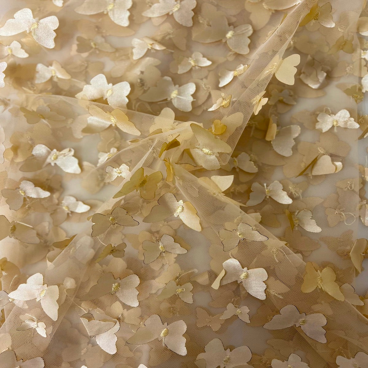 Transform your creative projects with our exquisite 3D butterfly embroidered satin lace fabric, designed to add a touch of elegance and whimsy to any creation. This stunning fabric features a delicate butterfly design intricately embroidered onto a soft, luxurious satin, offering both beauty and versatility for a wide range of applications.