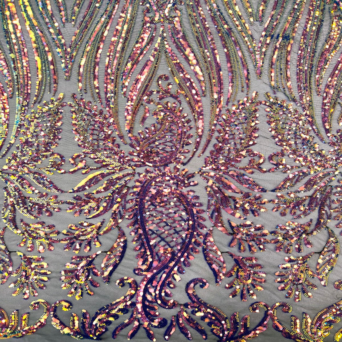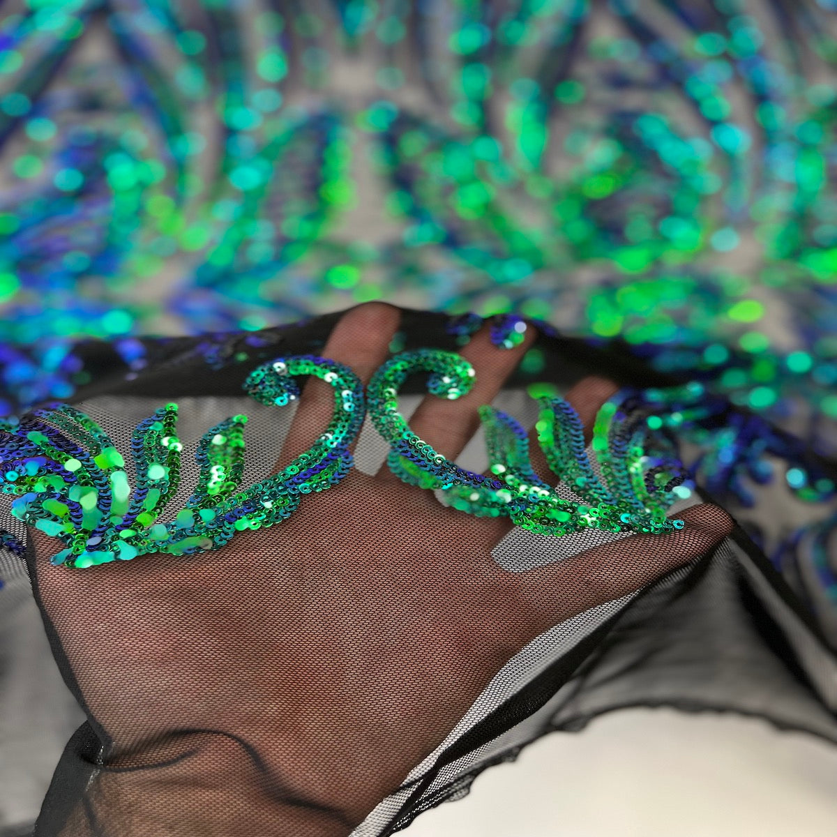 This exquisite fabric features a mesh width of 60" and a sequins design width of 52", crafted from a blend of polyester, nylon, and spandex for a luxurious feel. With a remarkable 4-way stretch, it effortlessly adapts to your designs, making it ideal for form-fitting applications.
