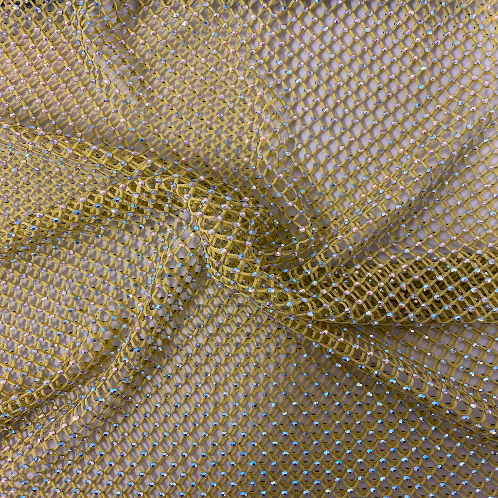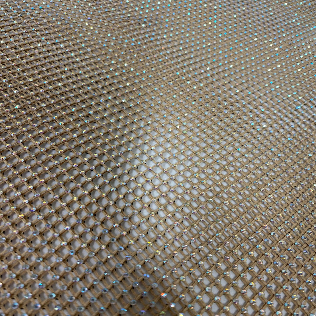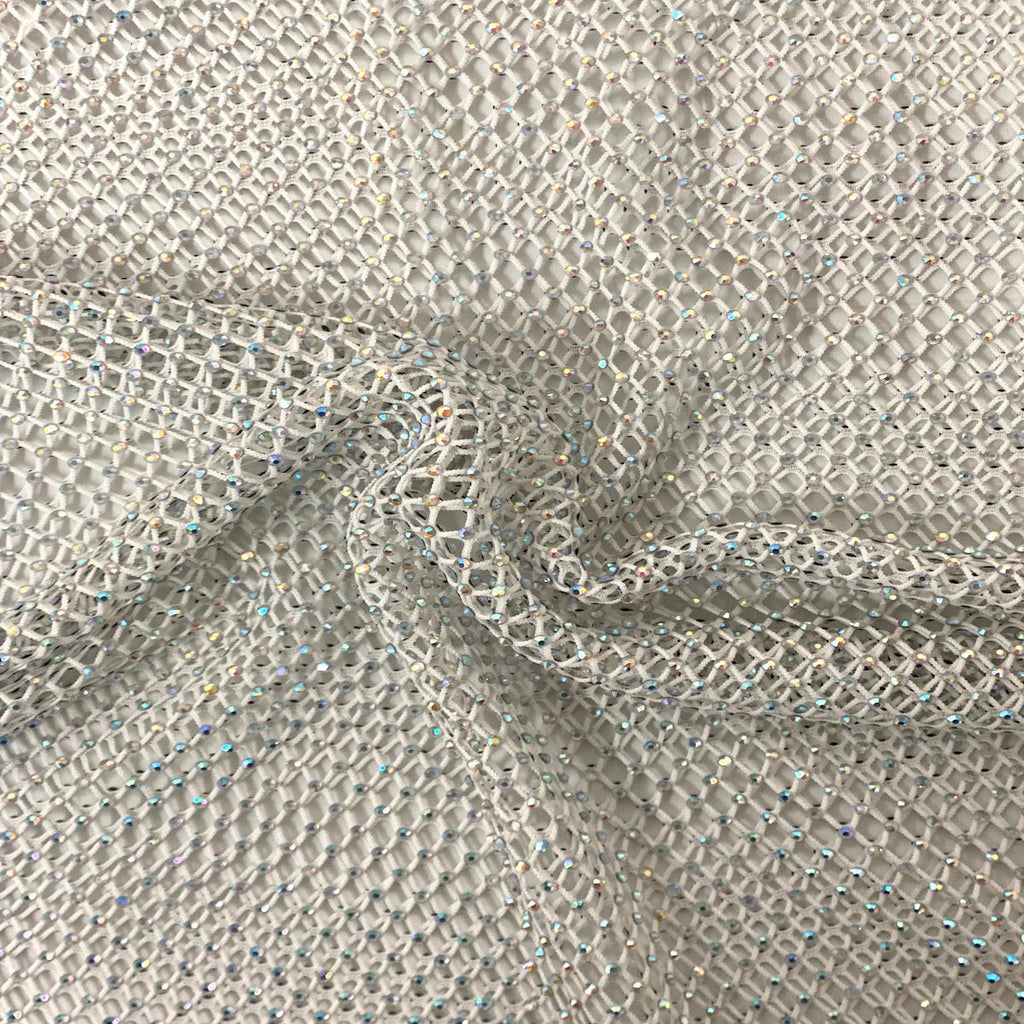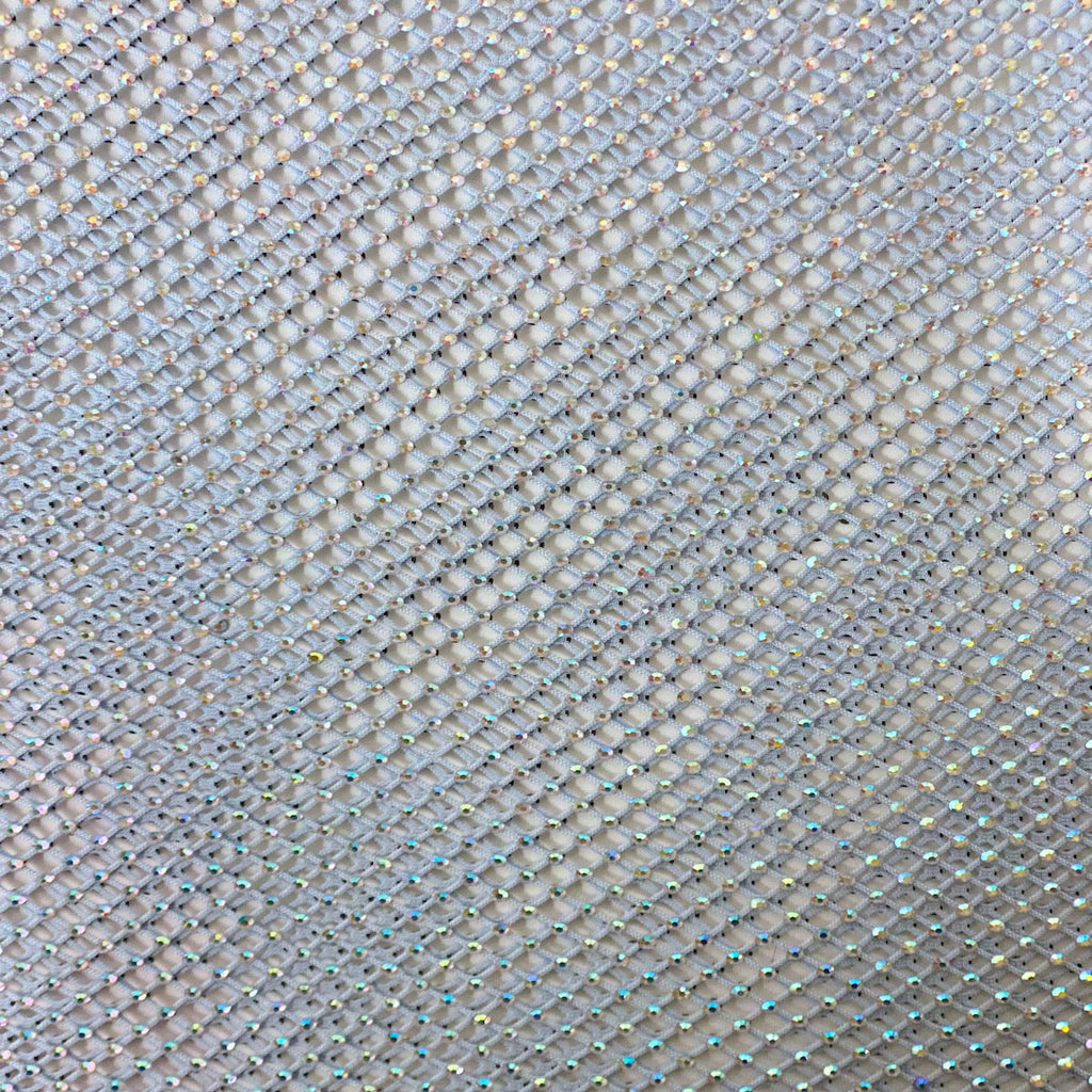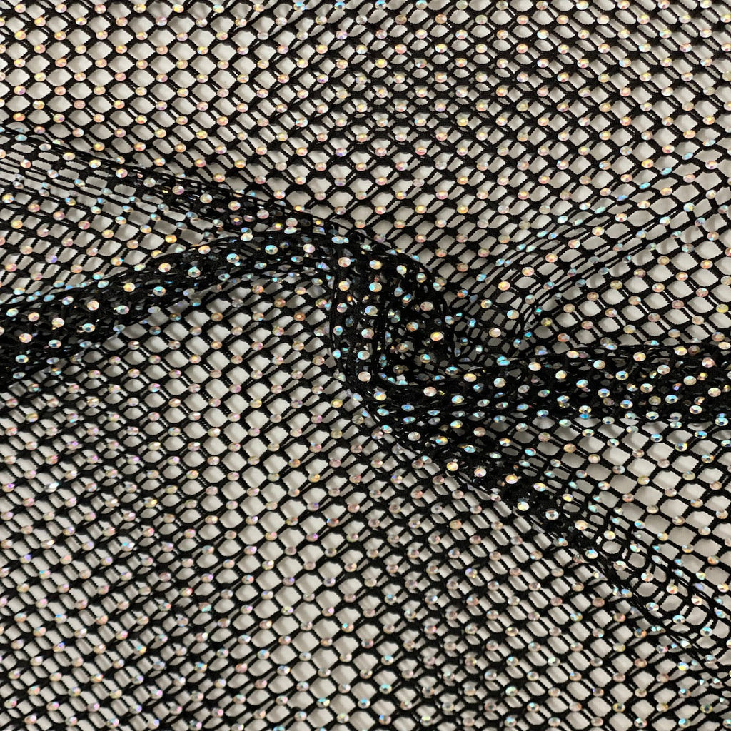 The iridescent rhinestones embedded within the fishnet lace add a touch of sparkle and sophistication, making it an ideal choice for special occasions or statement pieces. Its unique design can transform any project into a masterpiece, capturing the light beautifully and enhancing your creations.
