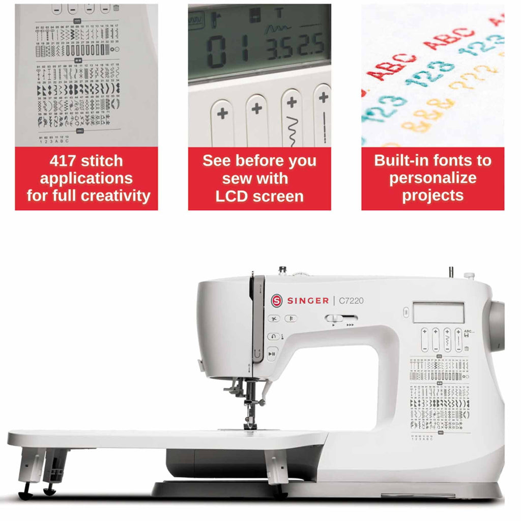 With electronic-enabled features and an LCD screen, the C7220 Computerized Sewing Machine is great for beginners and advanced sewists alike. The 200 built-in stitches offer 417 stitch applications to give you the right stitch for any fabric, from lightweight sheer to multiple layers of denim.
