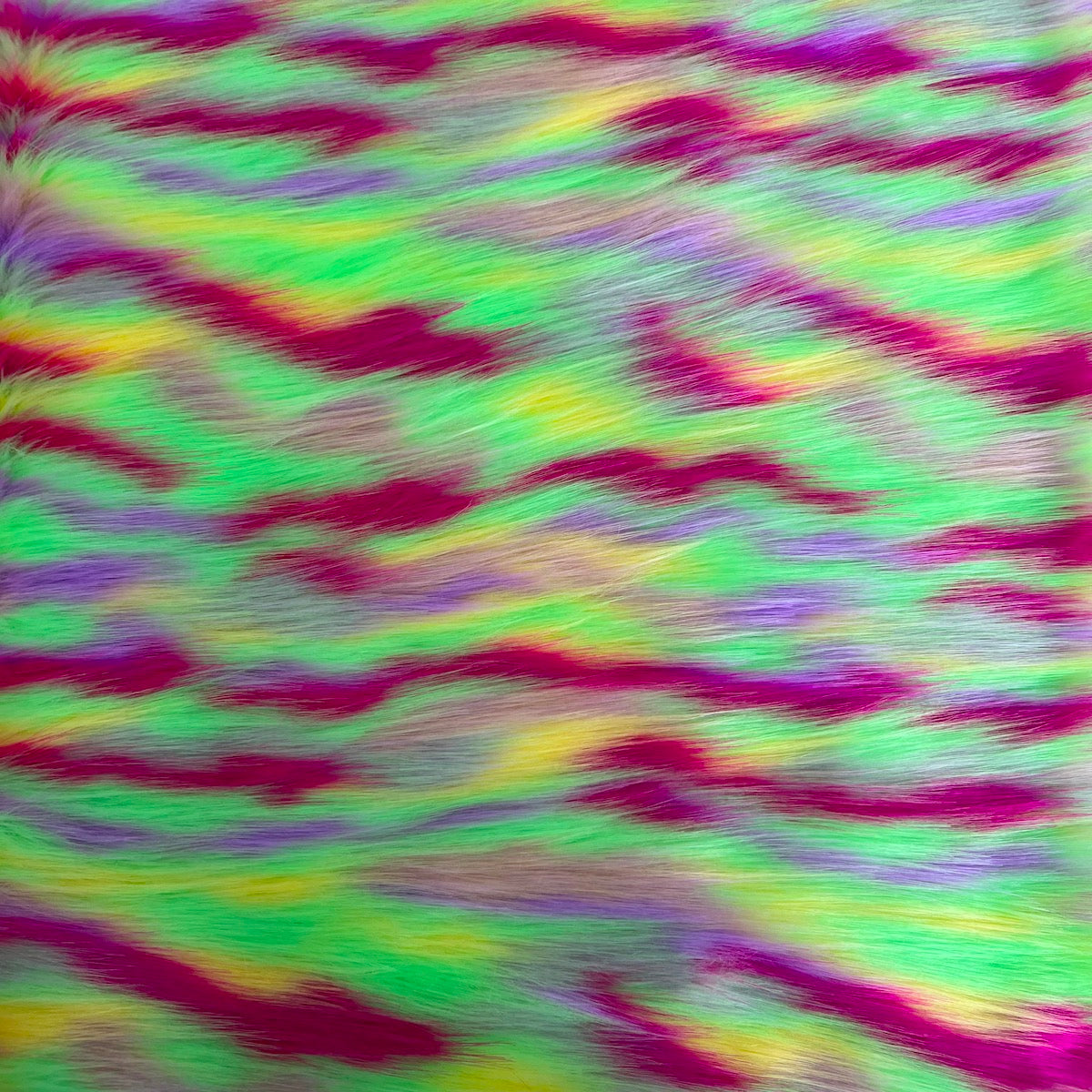 Curly Multicolor Patchwork Long Pile Faux Fur Fabric