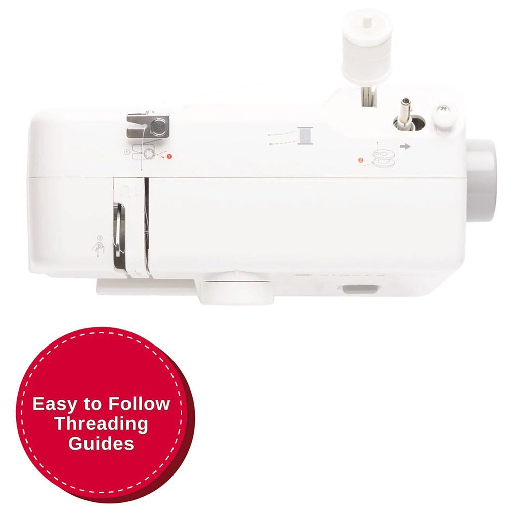 The SINGER® M1000 mending portable machine is only 5.5lbs (2.5kg), making it a lightweight, portable sidekick for the sewist-on-the-go! An affordable machine with easy set-up, a portable size, preset stitch settings, and 32 stitch applications that will assist you with simpler mending and garment repairs on light to medium-weight fabrics. For thicker fabrics and more applications, a full-size machine is recommended.