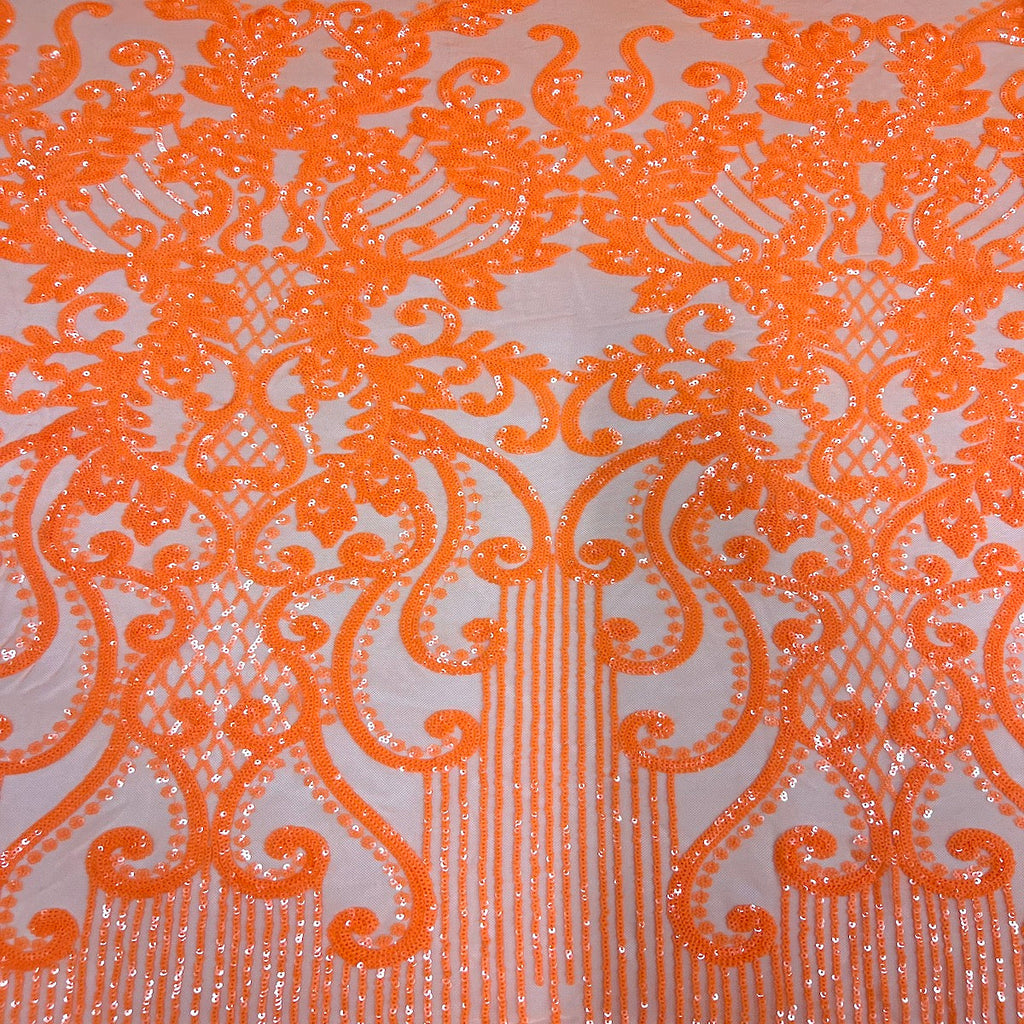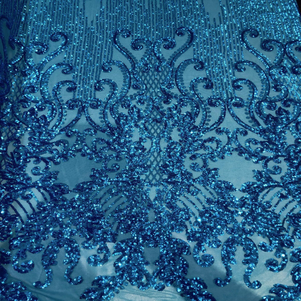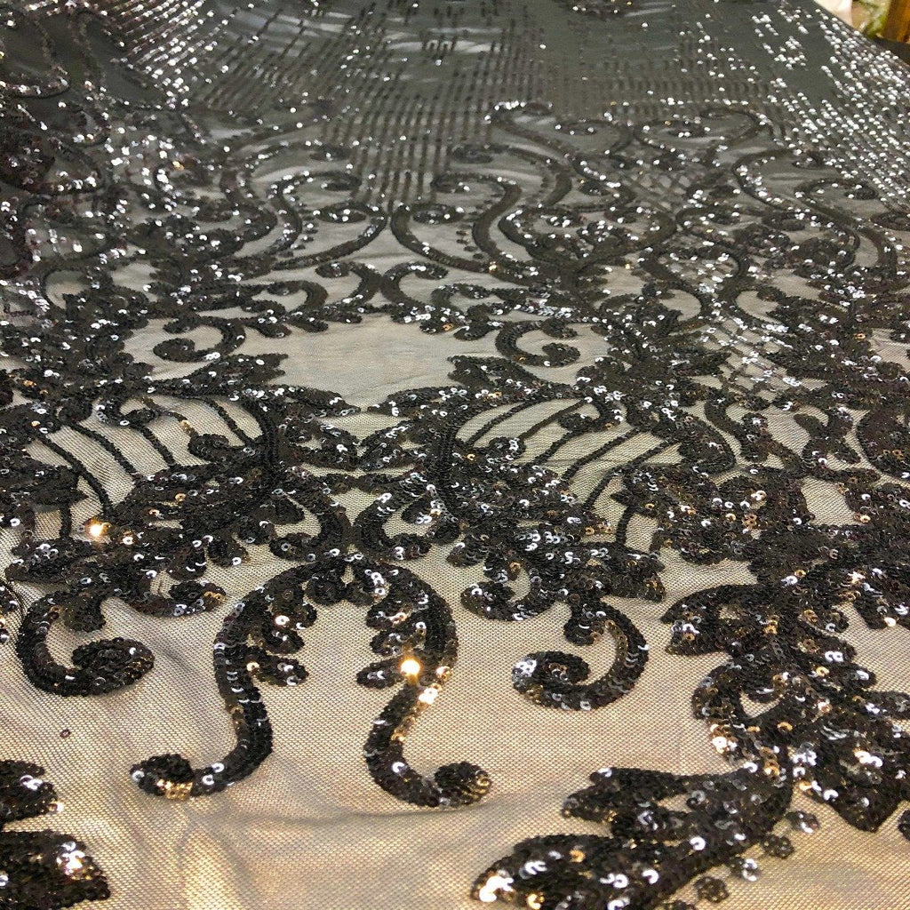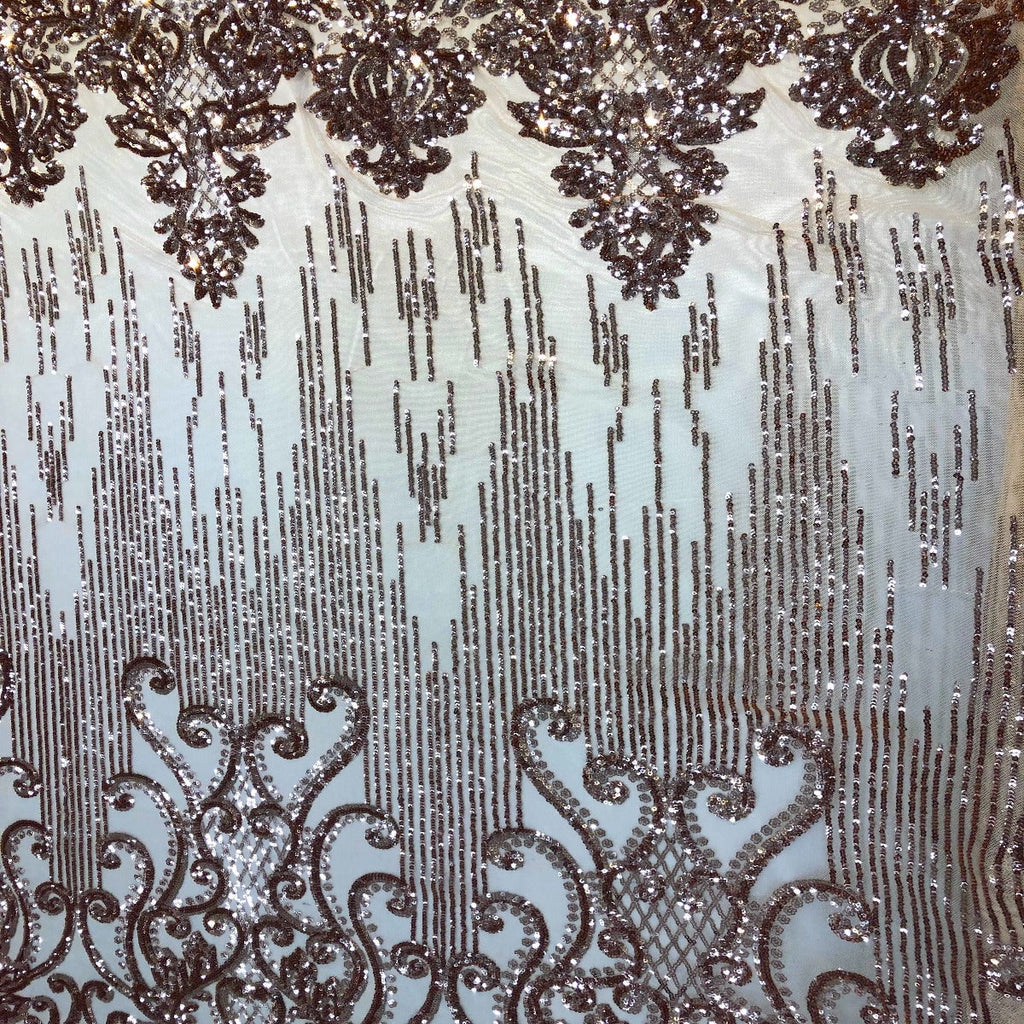 This beautiful and elegant sequins lace fabric is truly one of a kind. Designed with a stunning sequin pattern, it is backed with a four-way stretch nylon mesh fabric that ensures both comfort and flexibility. This versatile fabric is sold by the yard, and if you purchase more than one yard, you will receive a continuous piece. For example, ordering two yards will provide you with a piece measuring 60" x 72".