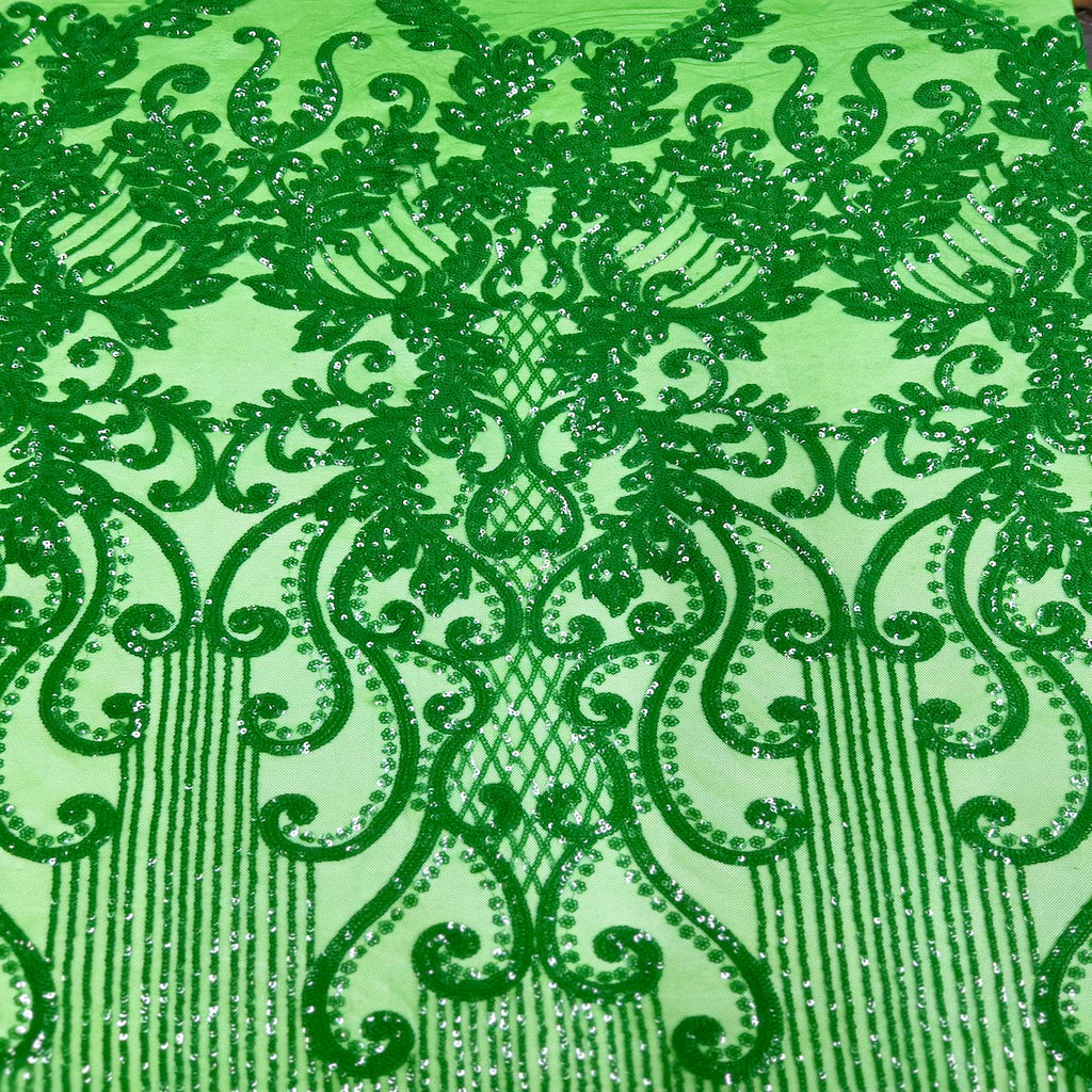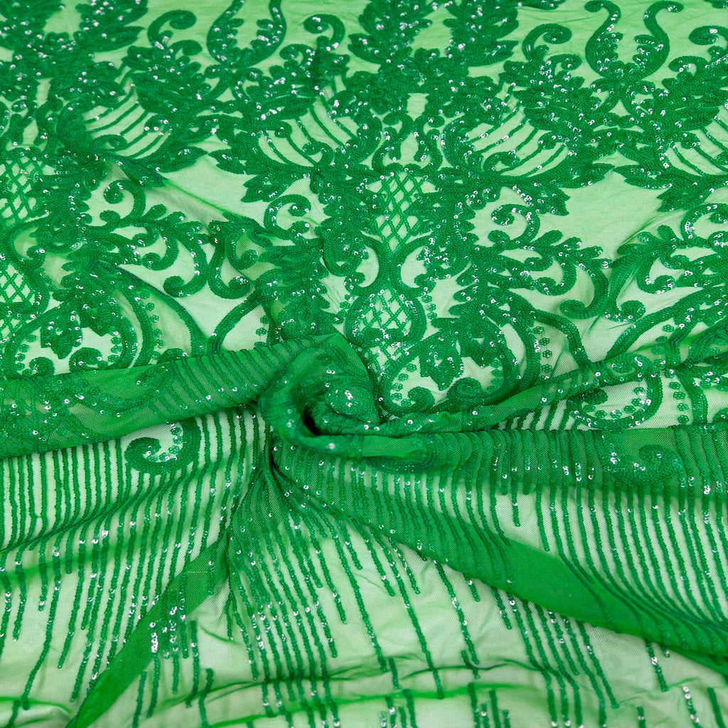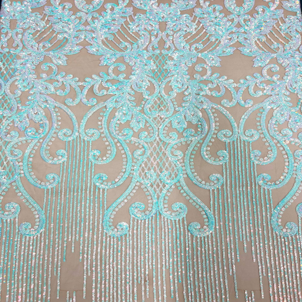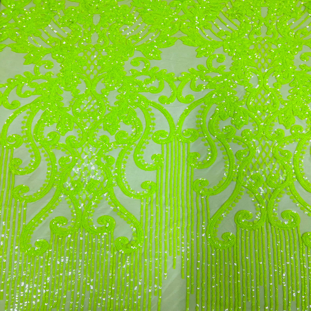 This beautiful and elegant sequins lace fabric is truly one of a kind. Designed with a stunning sequin pattern, it is backed with a four-way stretch nylon mesh fabric that ensures both comfort and flexibility. This versatile fabric is sold by the yard, and if you purchase more than one yard, you will receive a continuous piece. For example, ordering two yards will provide you with a piece measuring 60" x 72".