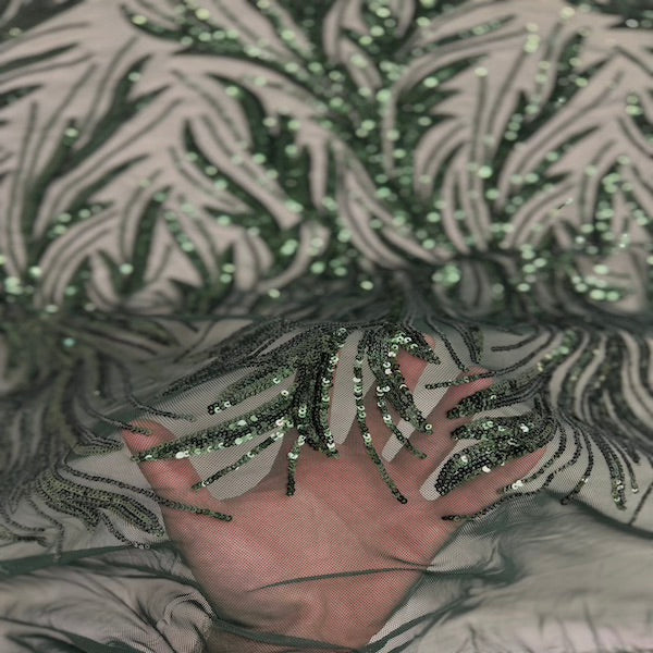 Discover the enchanting allure of our premium sequined fabric, beautifully backed with a four-way stretch nylon mesh. Each yard features an exquisite sequin design that adds a touch of elegance to any project. This fabric is sold by the yard, and if more than one yard is purchased, you will receive it in a continuous piece. For instance, ordering two yards will provide you with a piece measuring 60" x 72".