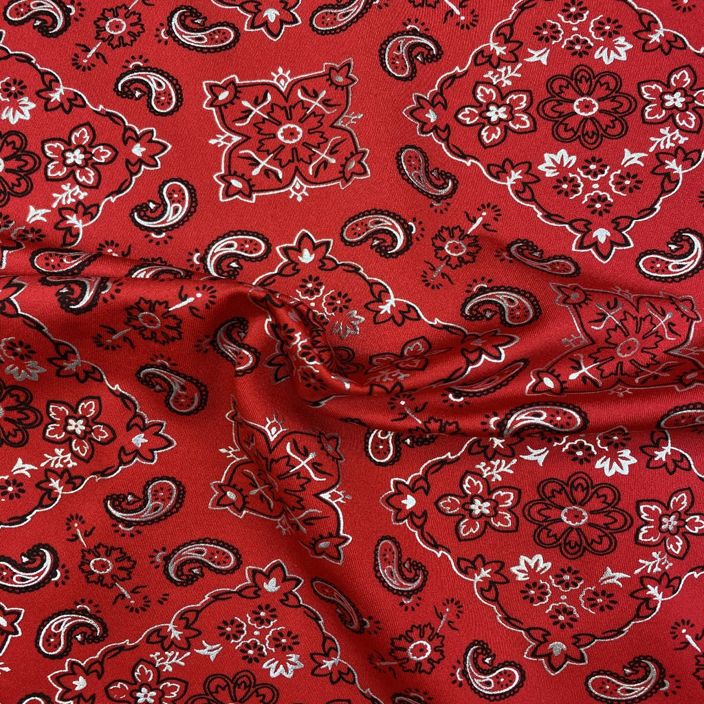Elevate your sewing and crafting projects with this dynamic paisley spandex fabric, where style meets functionality!