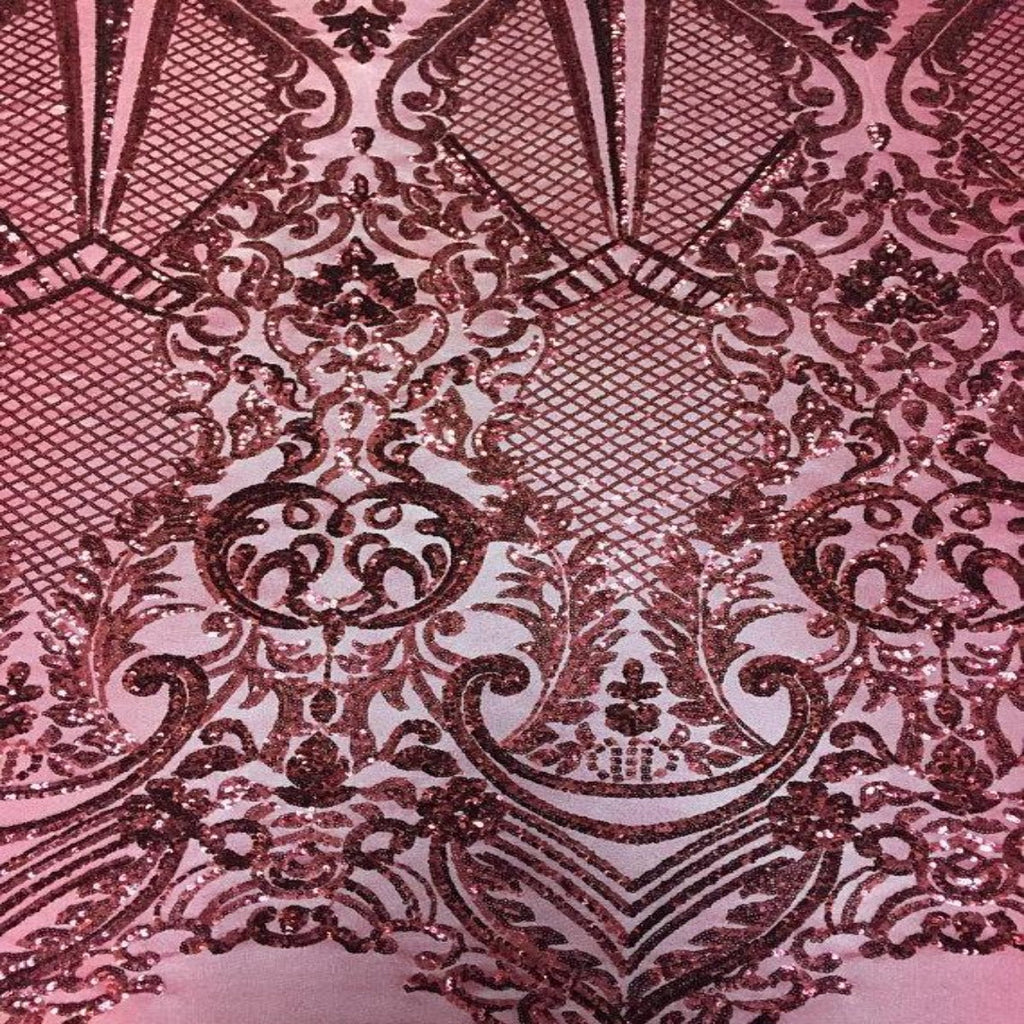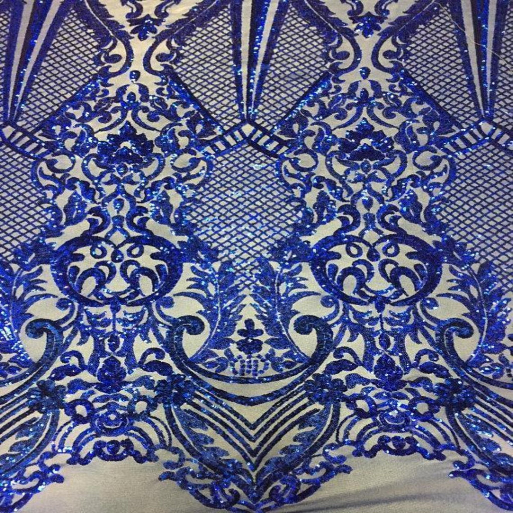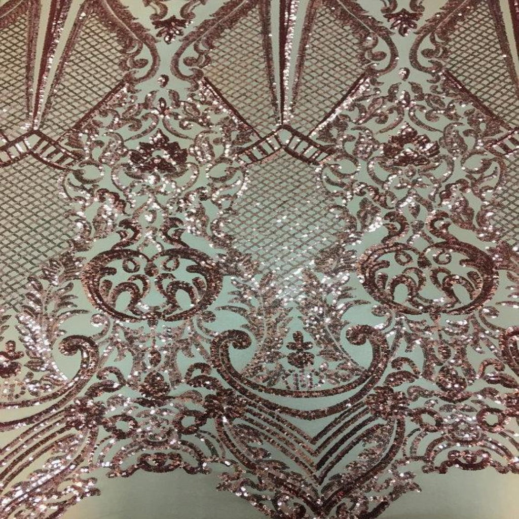 Sold by the yard, this fabric ensures convenience for your crafting needs. When purchasing multiple yards, you will receive your fabric in a continuous piece, allowing for seamless designs. For instance, ordering two yards means you will receive a generous piece measuring 60" x 72". The fabric is designed with a soft mesh backing that enhances its elegance.