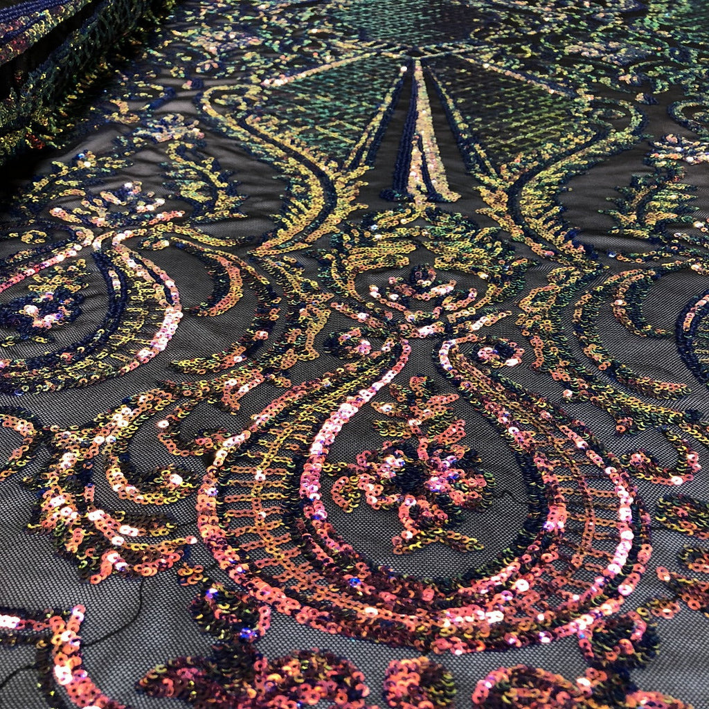 Discover the exquisite beauty of our Chantal Deluxe Sequins Lace Fabric, a luxurious choice that stands out in any project. This stunning fabric features sequins that illuminate a spectrum of colors from various angles, creating a mesmerizing effect. Backed with durable Nylon Mesh and designed with a four-way stretch, it provides exceptional comfort and flexibility, making it perfect for a variety of applications.