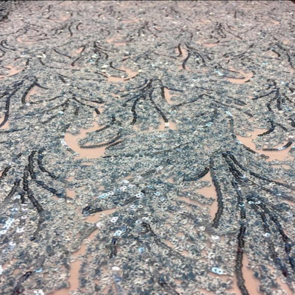 Crafted from high-quality polyester, this fabric features stunning embroidery that beautifully illuminates the intricate floral designs. The addition of sequins adds a touch of elegance and sparkle, making it an ideal choice for various applications. Whether you're designing clothing, gowns, or dresses for special occasions like weddings, proms, or cocktail parties, this fabric is versatile enough to meet your creative vision.