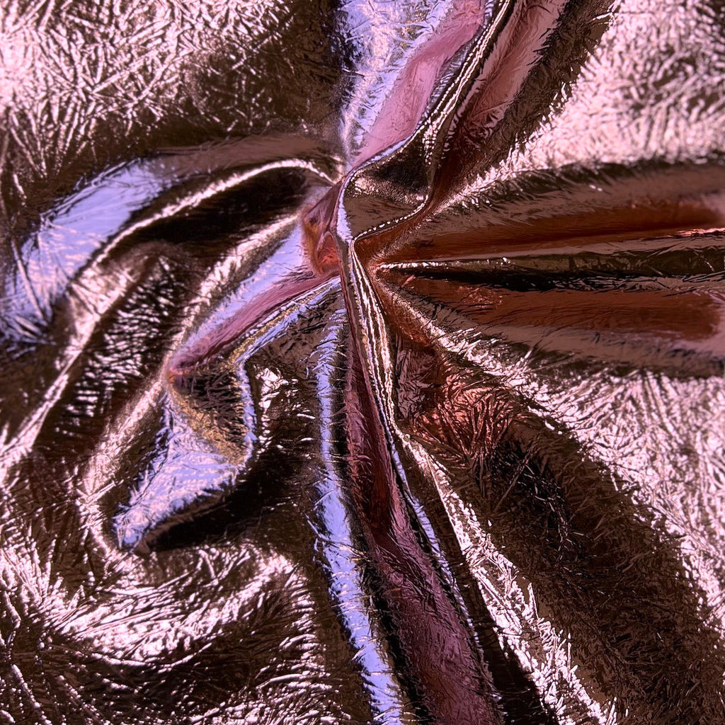 With a generous width of 54", this vinyl fabric boasts a thickness of 0.8MM, providing a durable and luxurious feel. Made from high-quality Vinyl and TPU, it features a unique crushed texture that catches the light beautifully, creating a mirror-like reflective finish that adds a touch of glamour to any item.