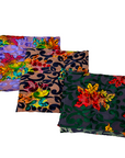 This luxurious multicolor floral burnout stretch velvet fabric is sold by the yard, allowing you to create stunning pieces tailored to your needs. If more than one yard is ordered, the fabric will come in one continuous piece. For example, ordering one yard provides a piece measuring 58" x 36", while two yards will yield a generous 58" x 72".