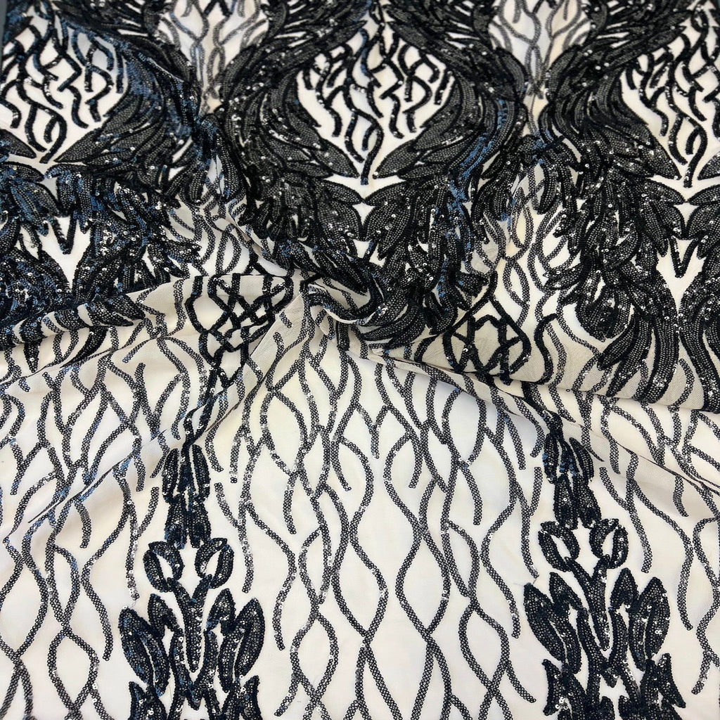 Discover the exquisite beauty of our stretch sequins lace fabric, designed to elevate your creations with a dazzling sequin pattern that catches the light beautifully. Each piece is backed with a four-way stretch nylon mesh, ensuring comfort and flexibility whether you're crafting elegant evening wear or stylish accessories.