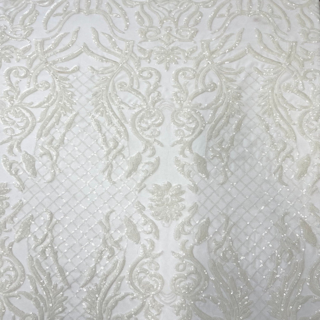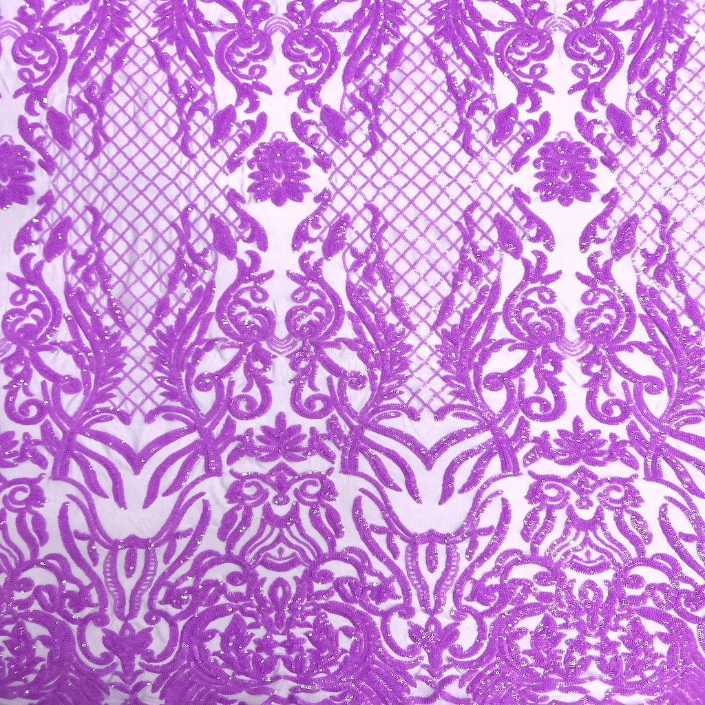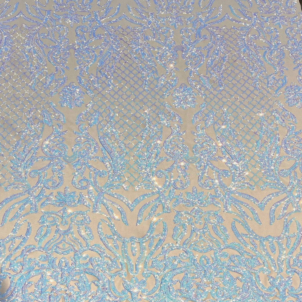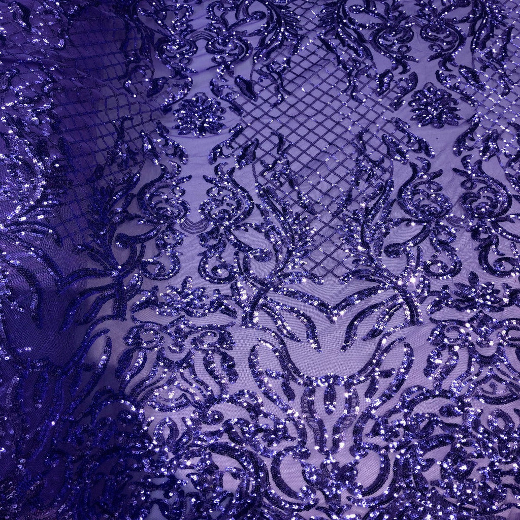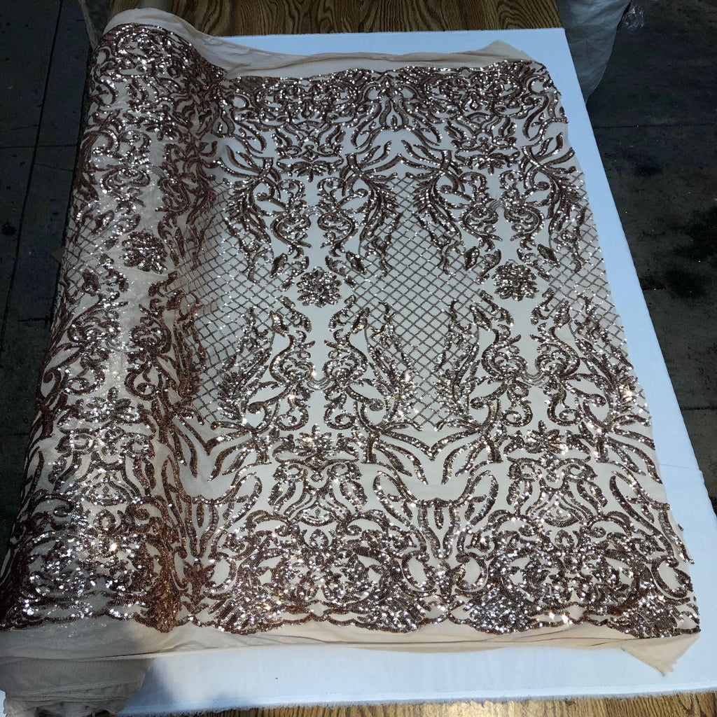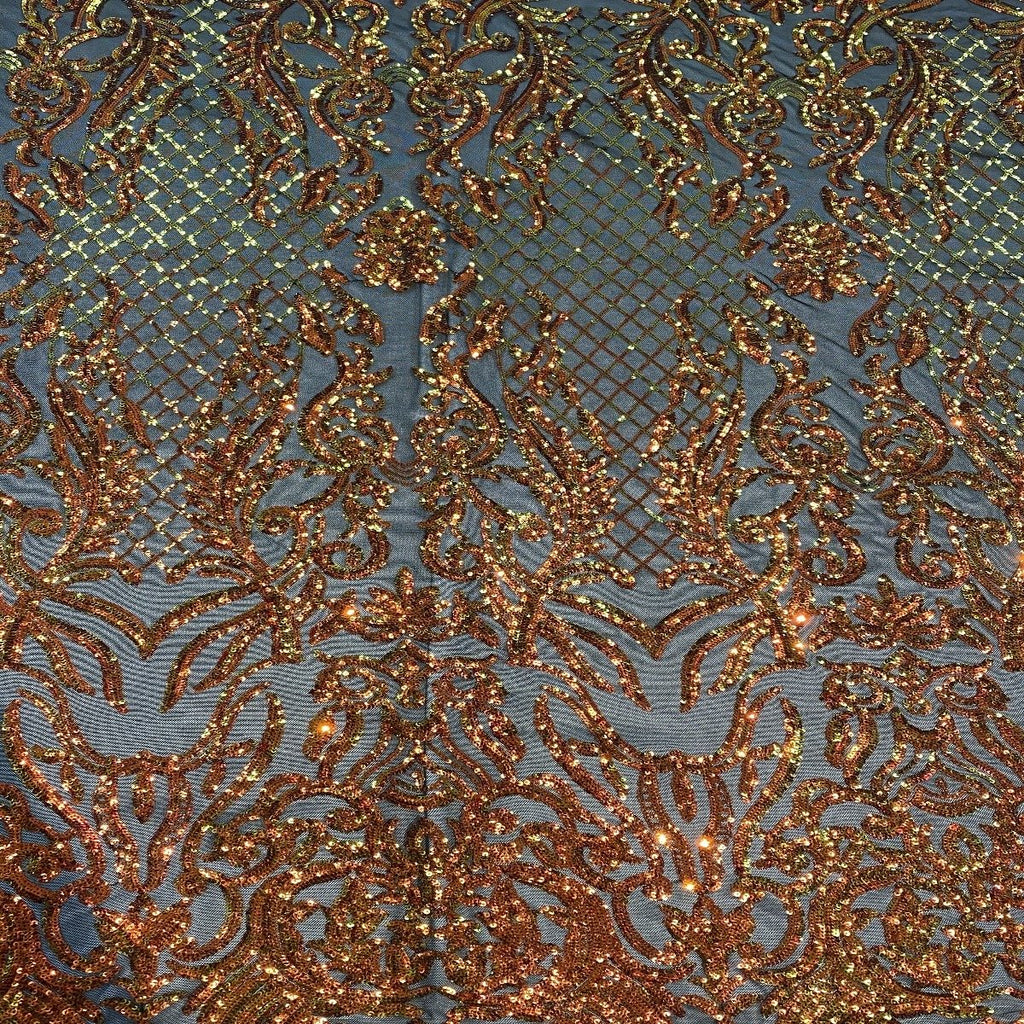 This beautiful and elegant Luna Sequins Lace Fabric is truly one of a kind. Crafted with a luxurious four-way stretch nylon mesh backing, this fabric features a stunning sequin design that captivates and dazzles. Sold by the yard, you can create custom lengths to suit your needs; if more than one yard is purchased, it will arrive as a continuous piece (for example, two yards will be delivered as a 60" x 72" piece).