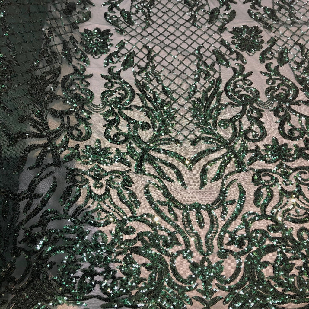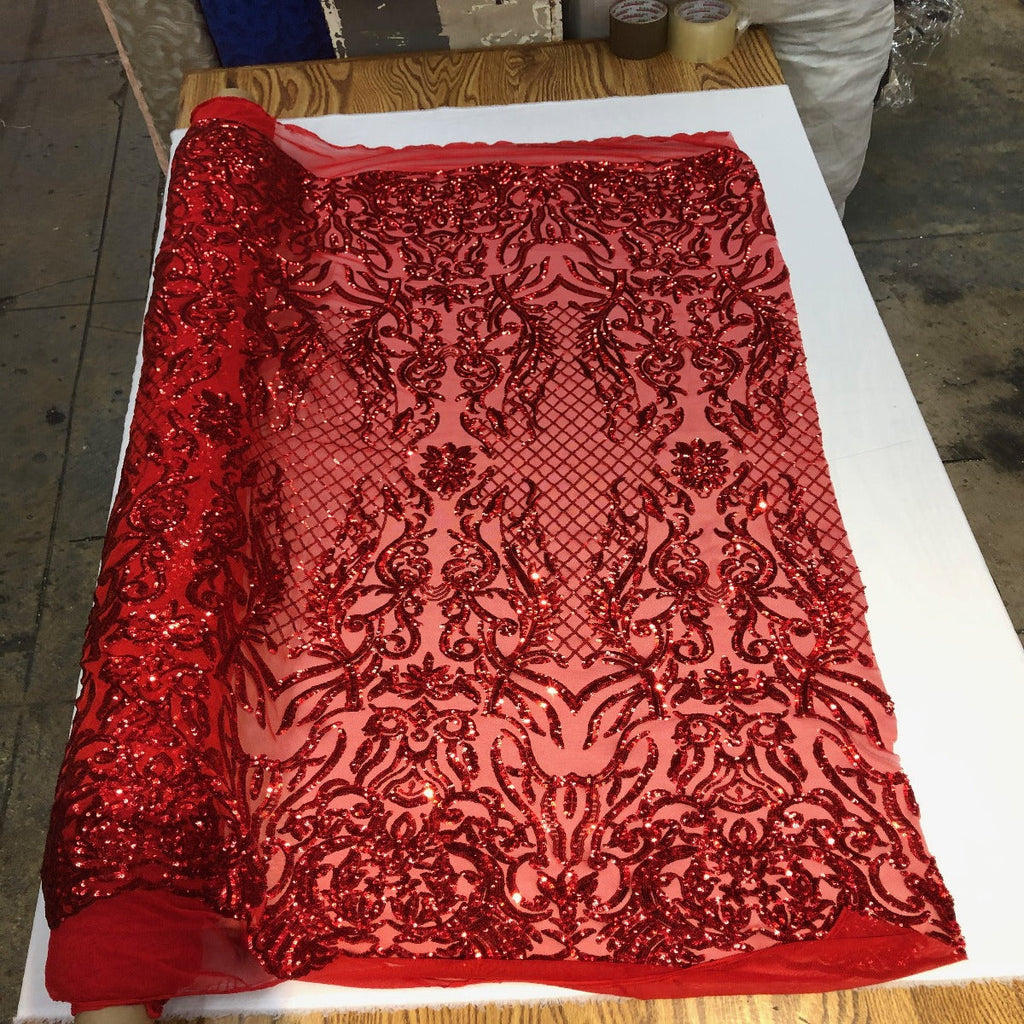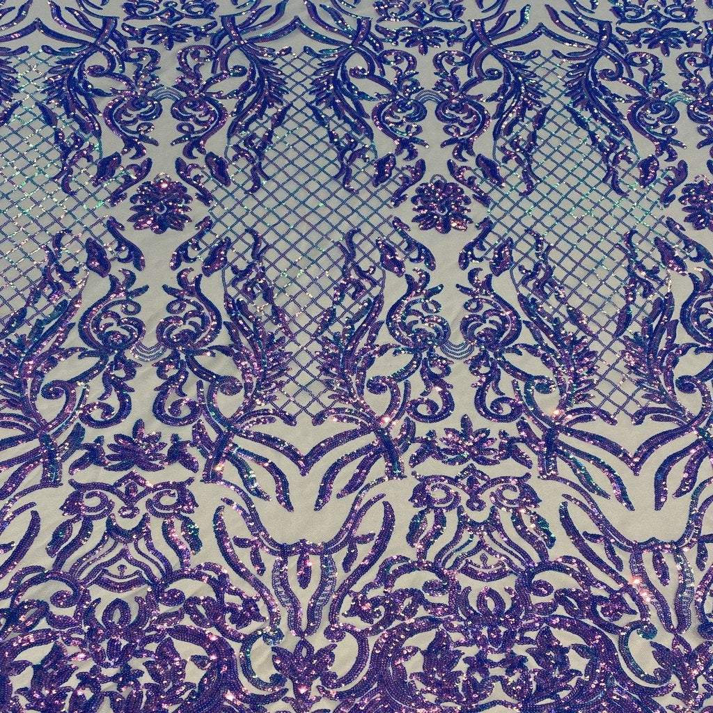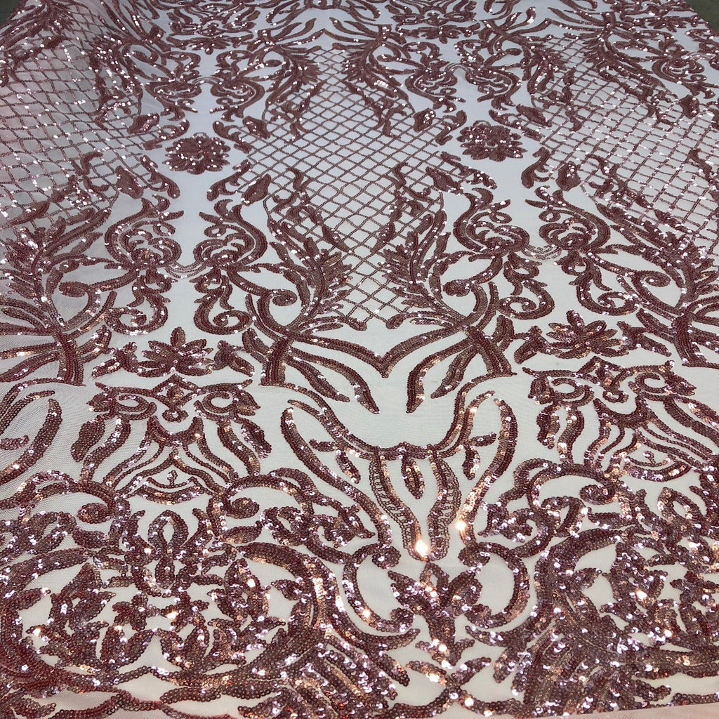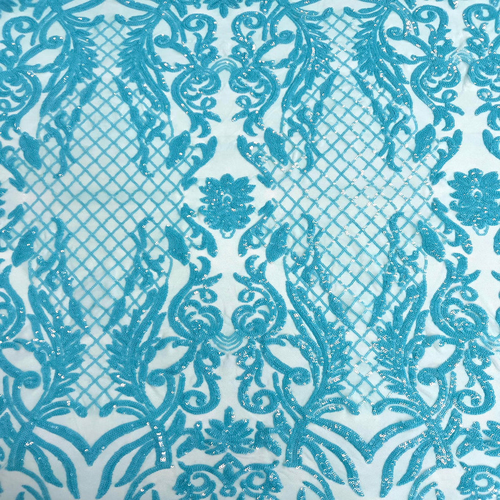 This beautiful and elegant Luna Sequins Lace Fabric is truly one of a kind. Crafted with a luxurious four-way stretch nylon mesh backing, this fabric features a stunning sequin design that captivates and dazzles. Sold by the yard, you can create custom lengths to suit your needs; if more than one yard is purchased, it will arrive as a continuous piece (for example, two yards will be delivered as a 60" x 72" piece).