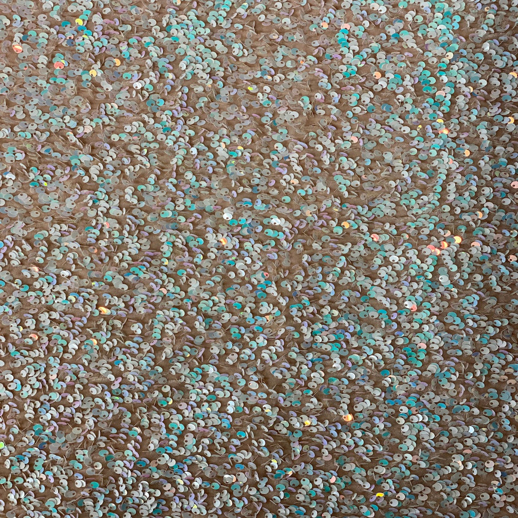 The fabric boasts a generous width of 60", with sequins embroidered at 52"/54", ensuring ample coverage for your creative projects. Each yard is sold individually, and if you order multiple yards, they will come in one continuous piece, allowing for seamless crafting.