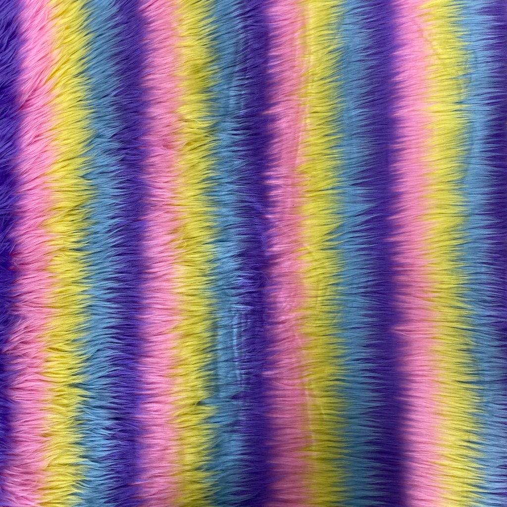 Discover our stunning collection of striped faux fur fabric, designed to elevate your creative projects with a touch of elegance and flair. This fabric features a delightful combination of colors in striking stripes, each measuring approximately 1.5 inches, perfect for adding visual interest to your designs. Sold by the yard, the fabric comes in generous widths of 58" to 60".